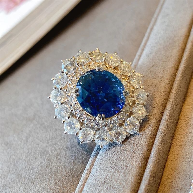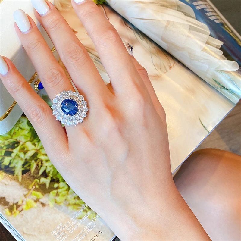 Bright blue gemstone full of diamond ring fingers