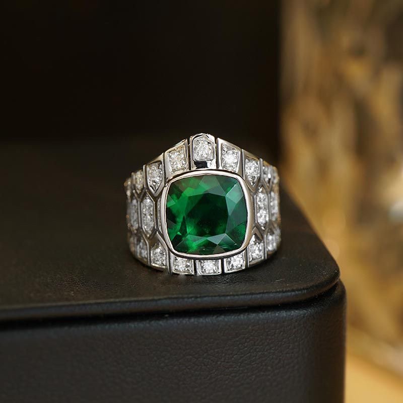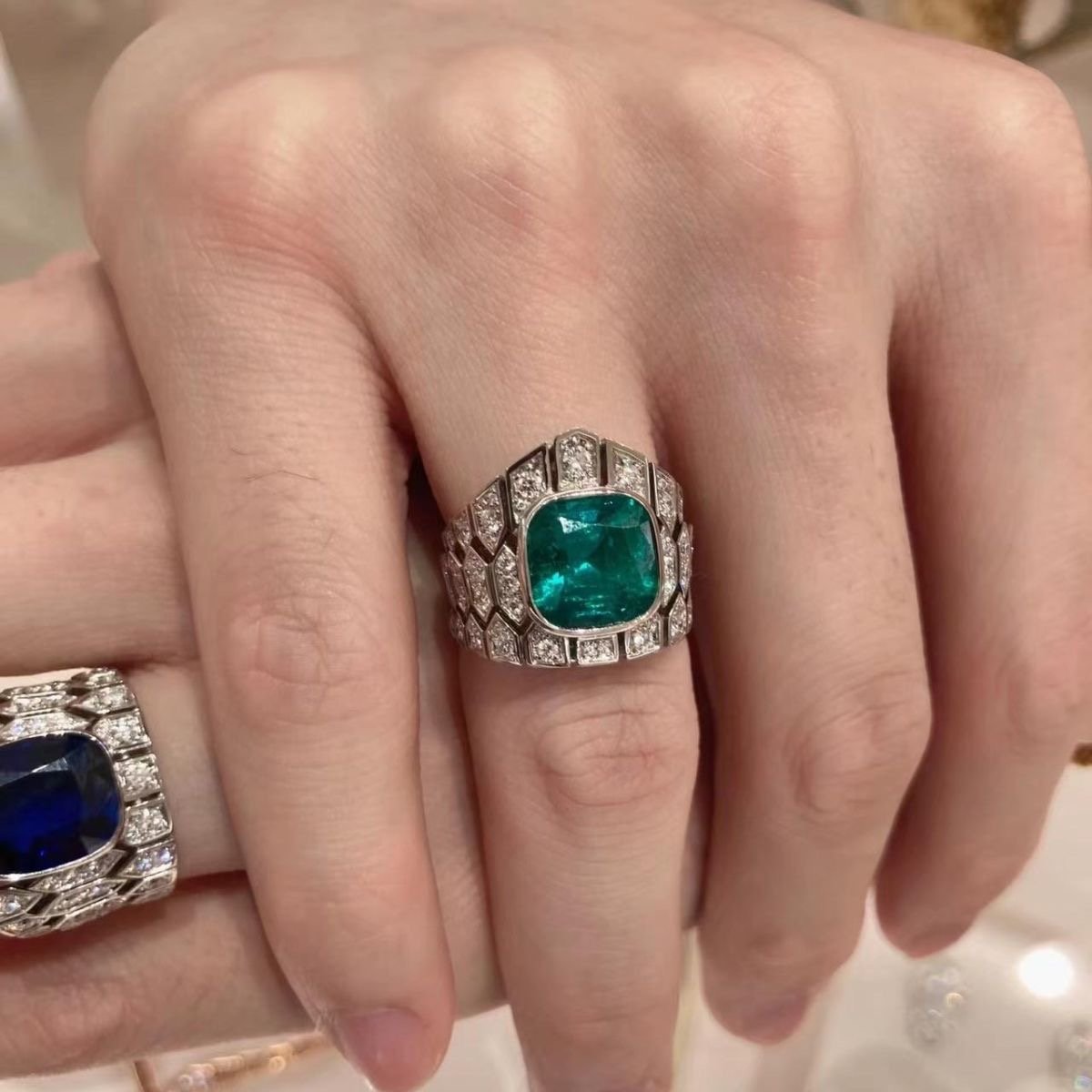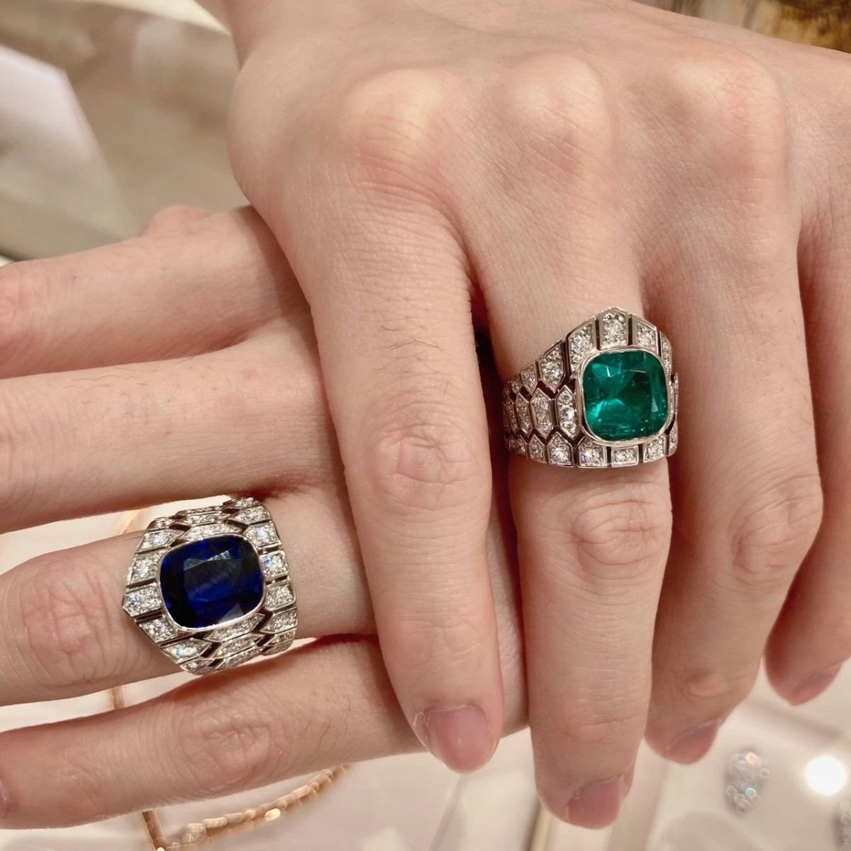 Bright blue gemstones are inlaid with diamond ring fingers.