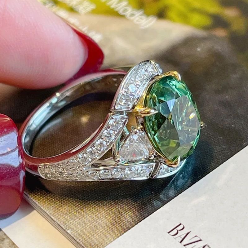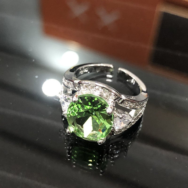 Emerald diamond zircon ring